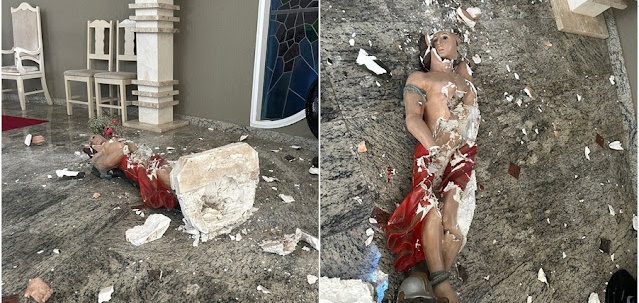 Homem invade igreja e destrói imagem de São Sebastião, padroeiro de Aperibé